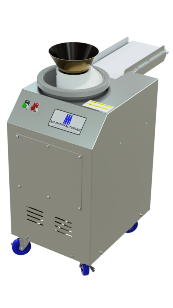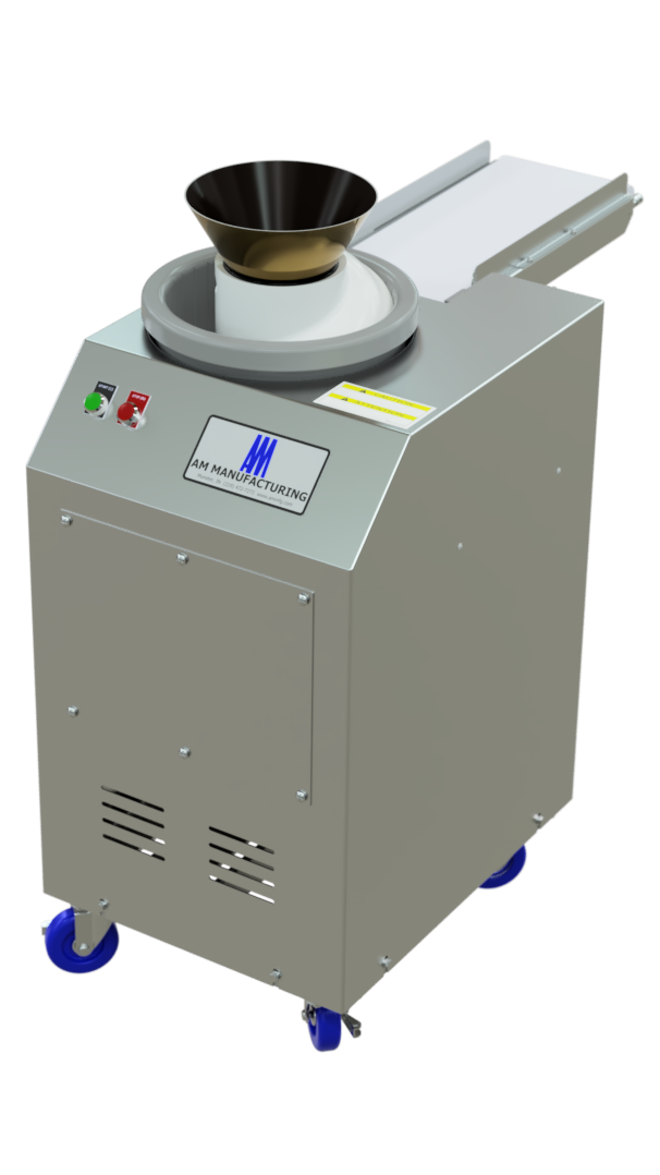 The newly redesigned Atwood Round-O-Matic dough rounder will reduce hours of hand rounding dough balls. This machine will round dough over a broad range of sizes, from one to 32 ounces, producing a round of unequaled quality. No adjustments are necessary for any size variation. The new rounder measures only 19” wide and takes up less room in busy and space deprived kitchens. Now featured with conveyor outfeed.